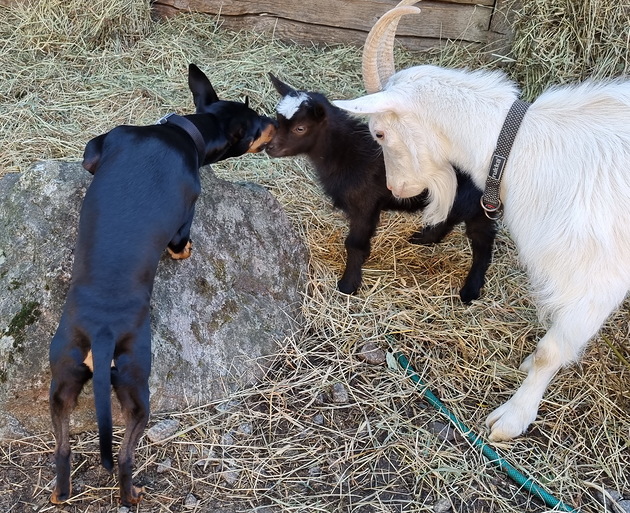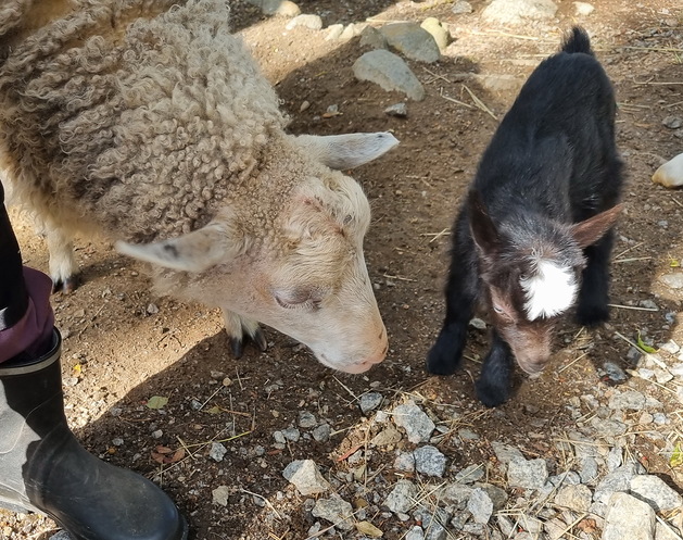 Lennun mielestä vain emäntämme Kaija ja Kerttu-lammas saavat halia ja nuuhkia pikku Marttaa. Kaija-emännällä on lupa laittaa Martta jopa takkinsa alle!
