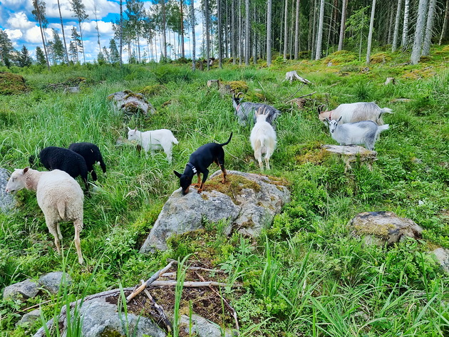 " Tänään kävimme läheisessä kantometsässä syömässä. Meidän lampaitten lisäksi mukana oli kuttuja ja kaksi kiliä. Täällä päin on paljon ilveksiä. Susiakin on nähty vain parin kilometrin päässä. Siksi meillä oli mukanamme oma laumanvartijakoiramme Harri."