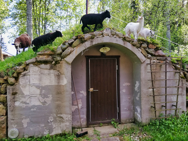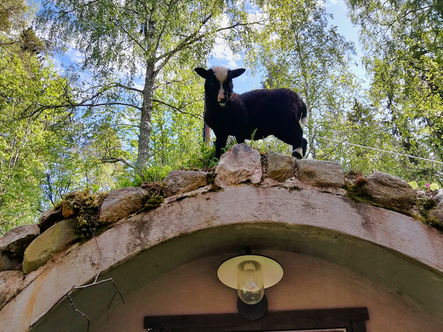 "Palattuamme pihalle kilit Alli ja Serafina haastoivat meidät karitsat kiipeämään kellarin katolle. Nokipoika ja Mikkihiiri ottivat haasteen vastaan. Minä pidin turvallisempana katsella alhaalta."