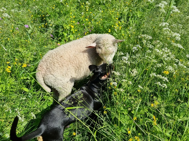 "Metsän ympäröimälle niitylle ei ole turvallista mennä yksin. Susia ja ilveksiä on nähty aika lähellä näitä paikkoja. Siksi pyysin mukaani niitylle laumanvartijakoira Zorron.