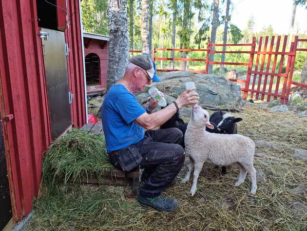 "No, kyllähän siitä jonkinmoinen kisa ja puskukilpailu tulee, kun on kaksi pulloa mutta kolme karitsaa, joista jokainen halaisi herkullista vuohenmaitoa. Jonkinmoinen puskukilpailuhan siitä oli lopuksi syntyä.