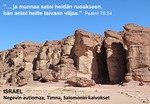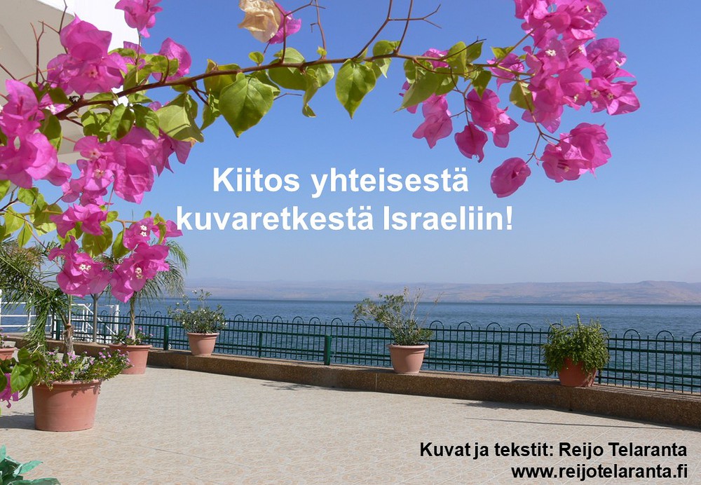 Israel on tavattoman kaunis ja monipuolinen maa. Vaikka maa on esimerkiksi Suomeen verrattuna tavattoman pieni. niin silti se tarjoaa samaan aikaan mahdollisuuden uintiin ja auringonottoon Eilatissa ja lasketteluun Hermon vuoren rinteillä. Tarjolla on kuivaa autiomaata ja paratiisin kaltaisia hedelmätarhoja, Raamatun ajan nähtävyyksiä sekä moderneja kaupunkeja ja nykyaikaisinta tekniikkaa.