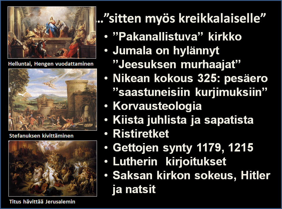 Kristinuskon juuret ovat sataprosenttisesti juutalaisuudessa. Abraham, Iisak, Jaakob ja Mooses olivat juutalaisia. Profeetat, Jeesus ja opetuslapset olivat juutalaisia. Raamattumme on lähes kokonaan juutalaisten kirjoittama. Saatanan juonet ja hyvää tarkoittavien pakanakristittyjen into samastua juutalaiseen