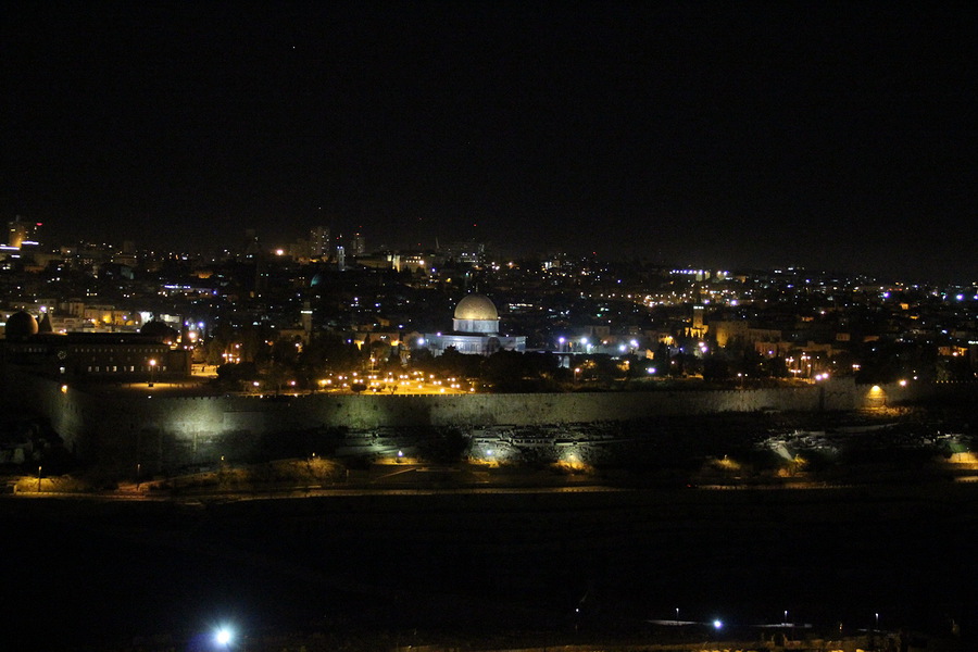 Puutarhahaudalla järjestettyn ehtoollis- ja ylösnousemusjuhla päätti tämän päivämme ohjelman. .Päivällinen jälkeen suurin osa ryhmästämme halusi osallistua "Jerusalem by Night" -ajeluun. Kävimme ympäröivillä kukkuloilla katselemassa Jerusalemia yövalaistuksessa ja påistäydyimme myäs Länsimuurilla, missä vielä tuolloinkin oli runsaasti väkeä rukoilemassa.