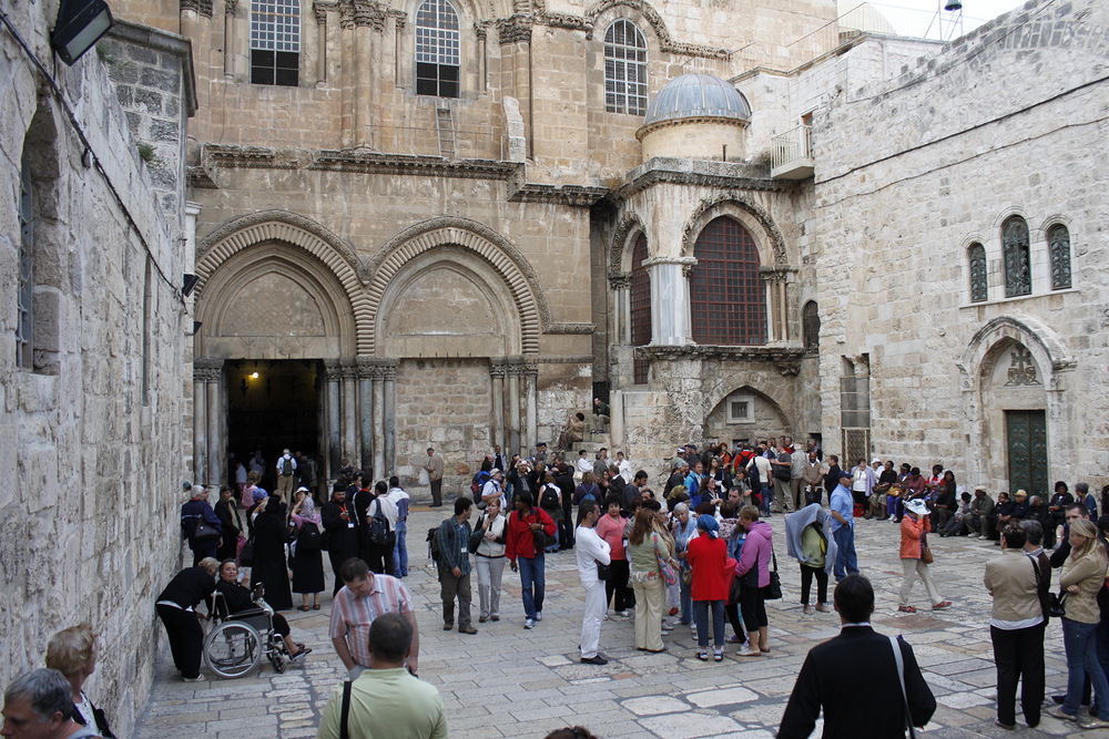 Pyhän haudan kirkon luona on aina tungosta ja häli...