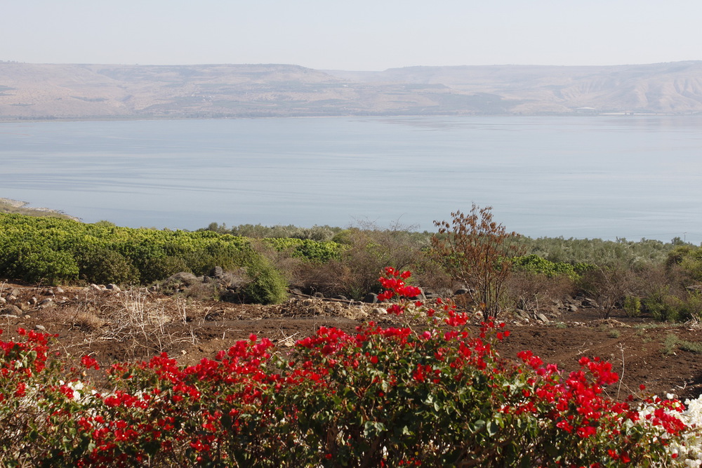 Vuorelta avautuu kaunis näkymä alas Gennesaretinjä...