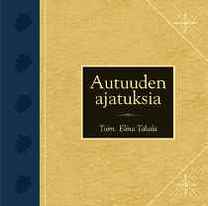 Elina Takalan toimittama Autuuden ajatuksia on hyvin kaunis ja tyylikkäästi vanhanaikaiselta näyttävä kirja. Sama ajattomalla tavalla arvokas linja jatkuu myös kirjan sisällä. Koristeellisuudessaankin arvokkaalla ulkoasulla on haluttu viestiä jostain tärkeästä. Tällaisiin kansiin pannaan vain kestävää sanottavaa.