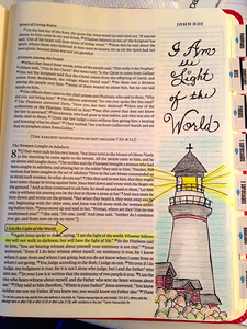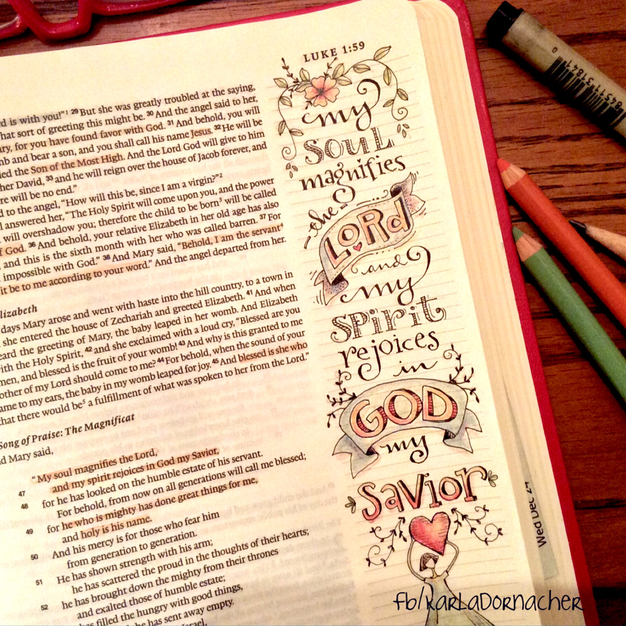 Suuressa maailmassa BIBLE JOURNALING on jo hyvässä vauhdissa. Raamatun marginaaleja koristellaan omien muistiinpanojen lisäksi värikkäin piirroksin ja taidokkain kirjaimin. Monet netin sivuiltakin löytyvät koristellut Raamatut muistuttavat keskiajan munkkien käsin kopioimia ja taidokkain kuvin koristelemia Raamattuja. Pyhästä kirjastakin voi taidolla, hienotunteisuudella ja tekstejä kunnioittaen tehdä vaikkapa sivu sivulta Raamatun sanomaa julistavia taideteoksia.