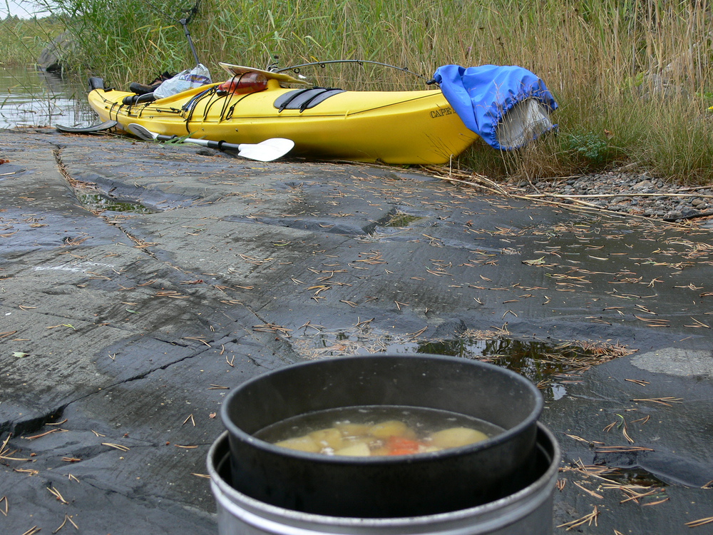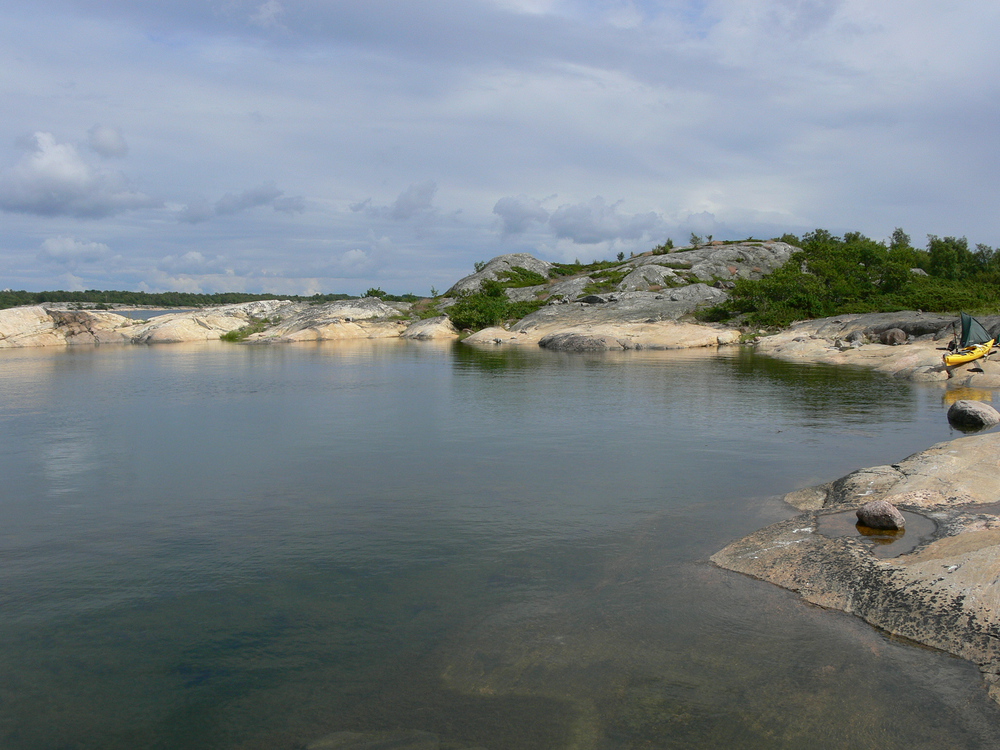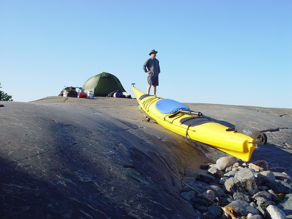 Kajakkikulkurin asumus pienellä ulkoluodolla
