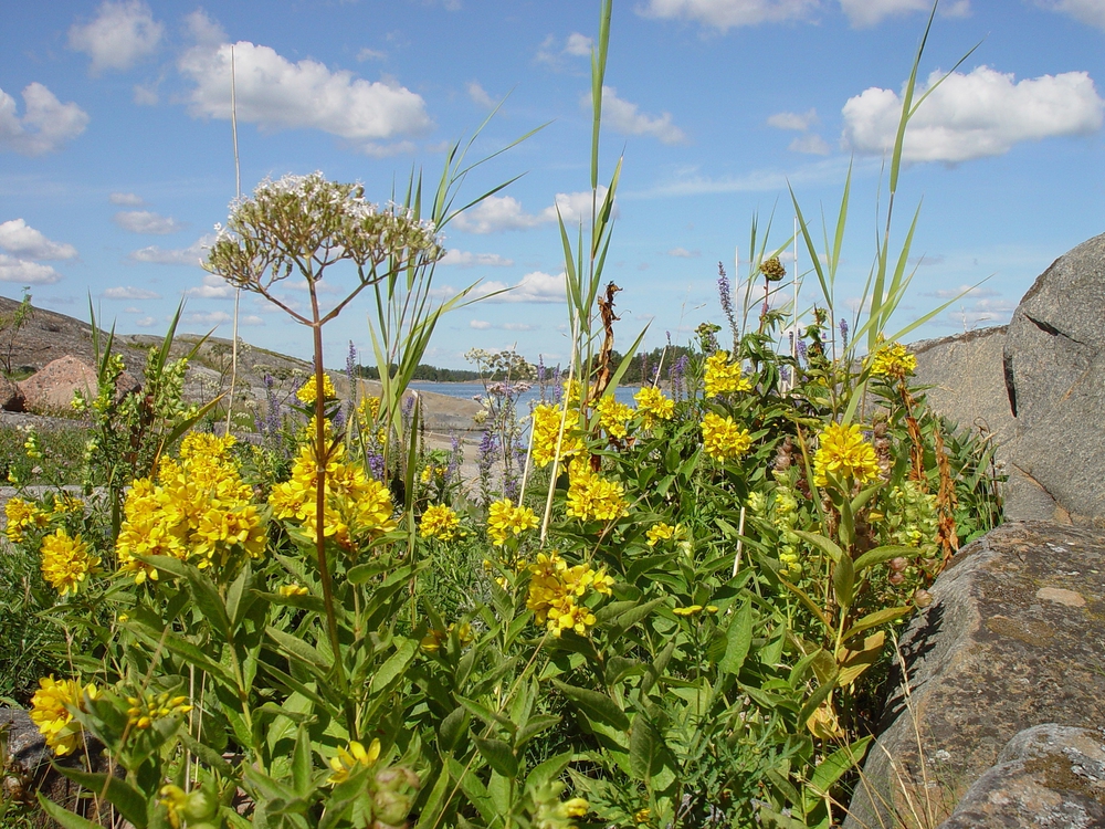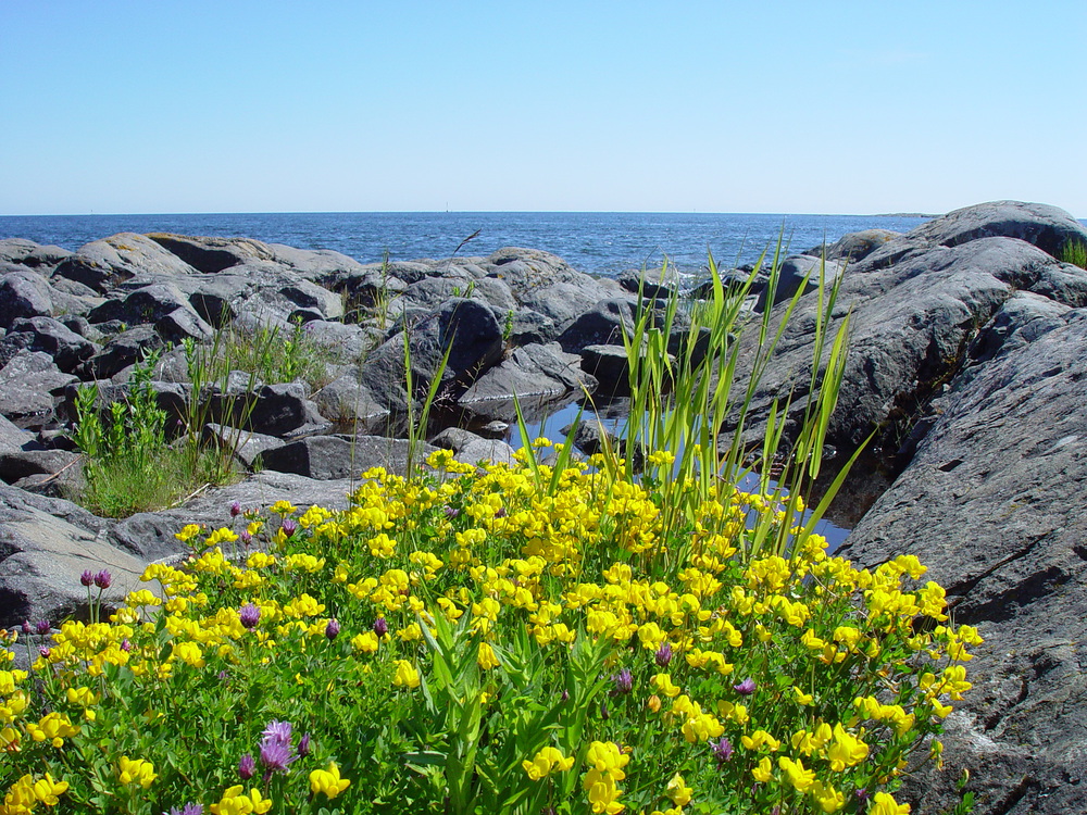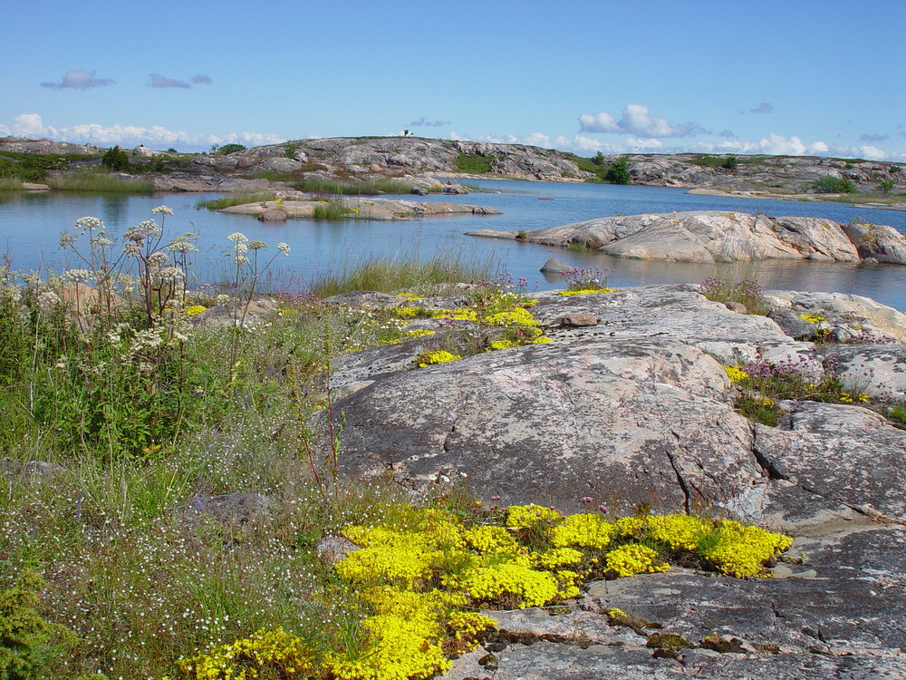 Jopa paljaalla kalliolla hehkuu keltainen kukkamat...