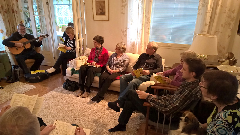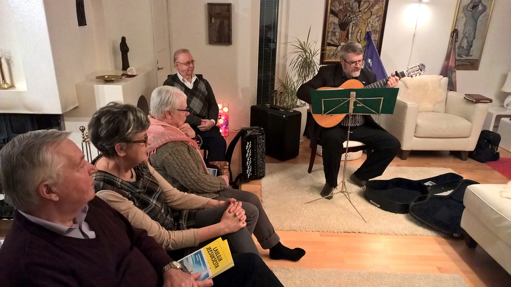 Illan puhujana ja myös säestäjänä oli Petri Kauhan...