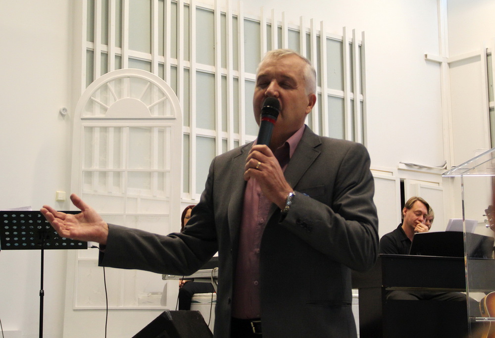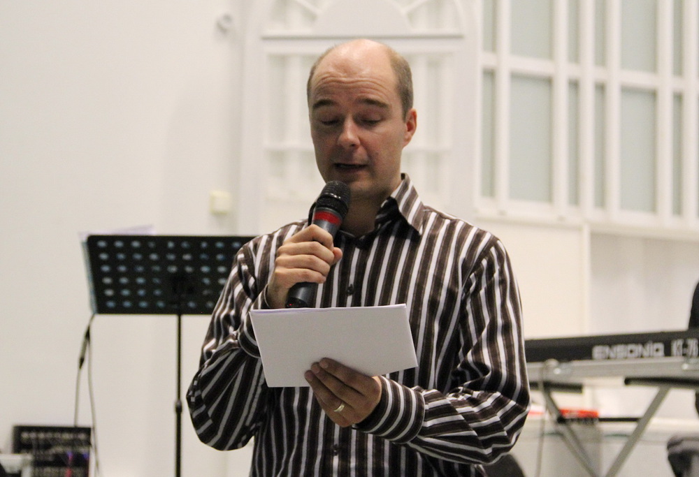Tapani Talikainen johdatti juhlaväen alkurukouksee...