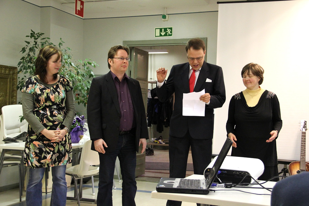 Kevään 2011 kurssin päätösjuhlaa vietettiin kristillisen koulun ruokalassa maanantaina 2.5.2011. Siihen, mitä kaikkea mahtavaan iltaamme mahtui, voit tutustua tekstin jälkeen olevan kuvakertomuksen välityksellä. Päätösjuhlan uupea ohjelma huipentui todistusten jakamiseen ja yhteiseen rukoukseen.