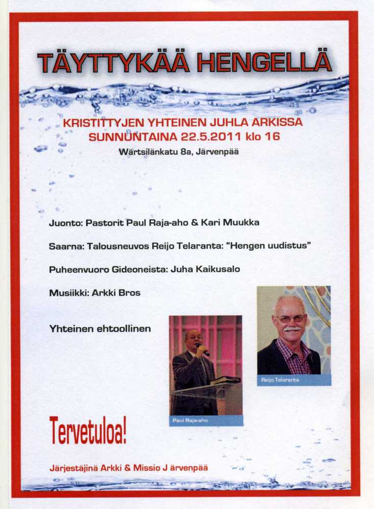 Pyhän HHengen viikonlopun lauantain aikana Reijo Telaranta opetti rukouksesta, armolahjoista ja Pyhän Hengen toiminnasta eläväksi tekijänä, opettajana, varustajana, rohkaisijana ja Kristuksen Jeesuksen kirkastajana. Päivän aikana rukoiltiin paljon, vietettiin aikaa järjestämällä hauskoja leikkimielisiä kilpailuja ja ylistäen Herraa lauluilla.