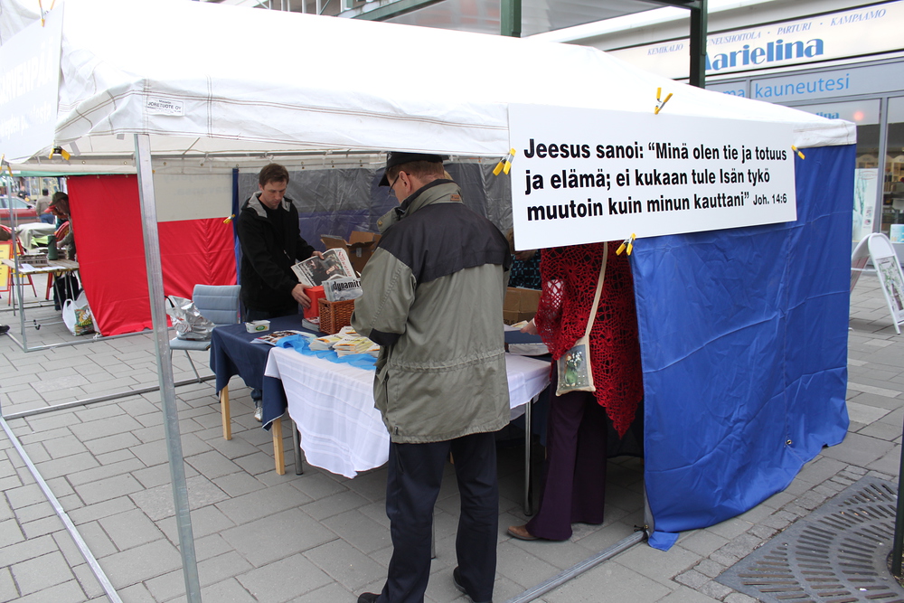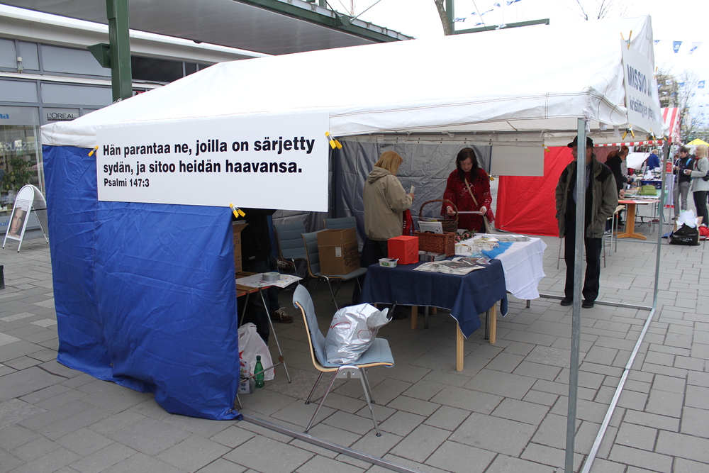 Missio Järvenpään teltassa vallitsi sateesta huolimatta iloinen ja lämmin tunnelma. Luterilaisen seurakunnan, Arkin ja Saalemin jäsenet palvelivat yhdessä ja rinta rinnan kaikkia teltan suojaan pysähtyneitä ja hengellisistä kysymyksistä kiinnostuneita. Joidenkin kohdalla tämän vuoden Järvenpää-päivän pilannut sade sai osoittautua elämää uudistavaksi siunauksen sateeksi.