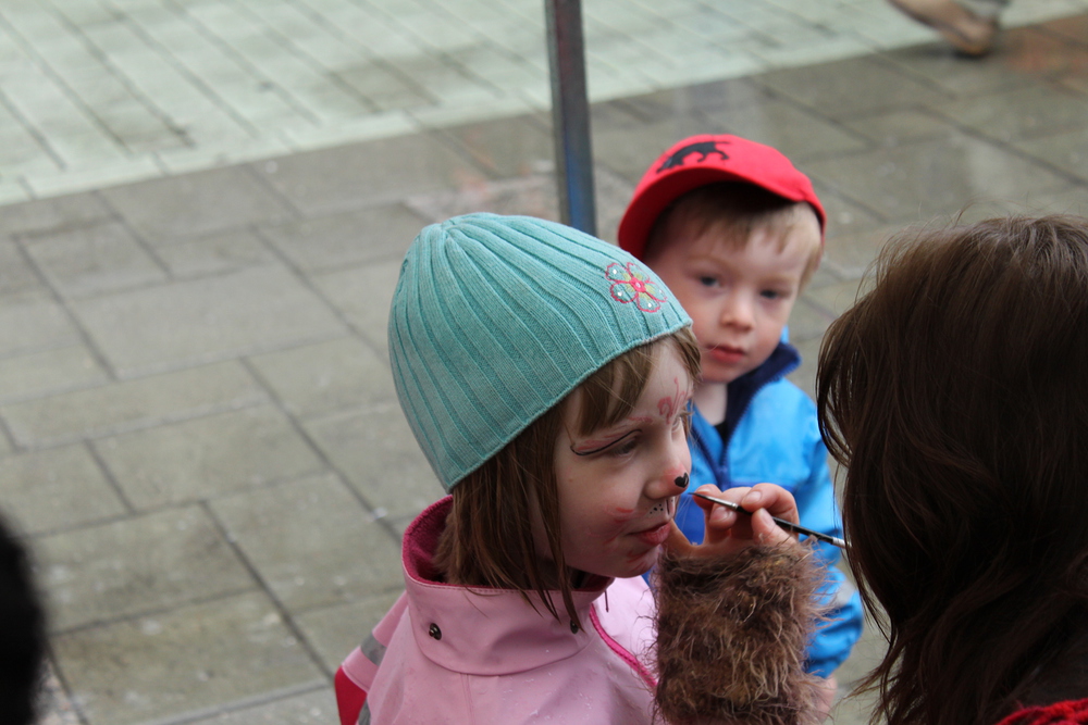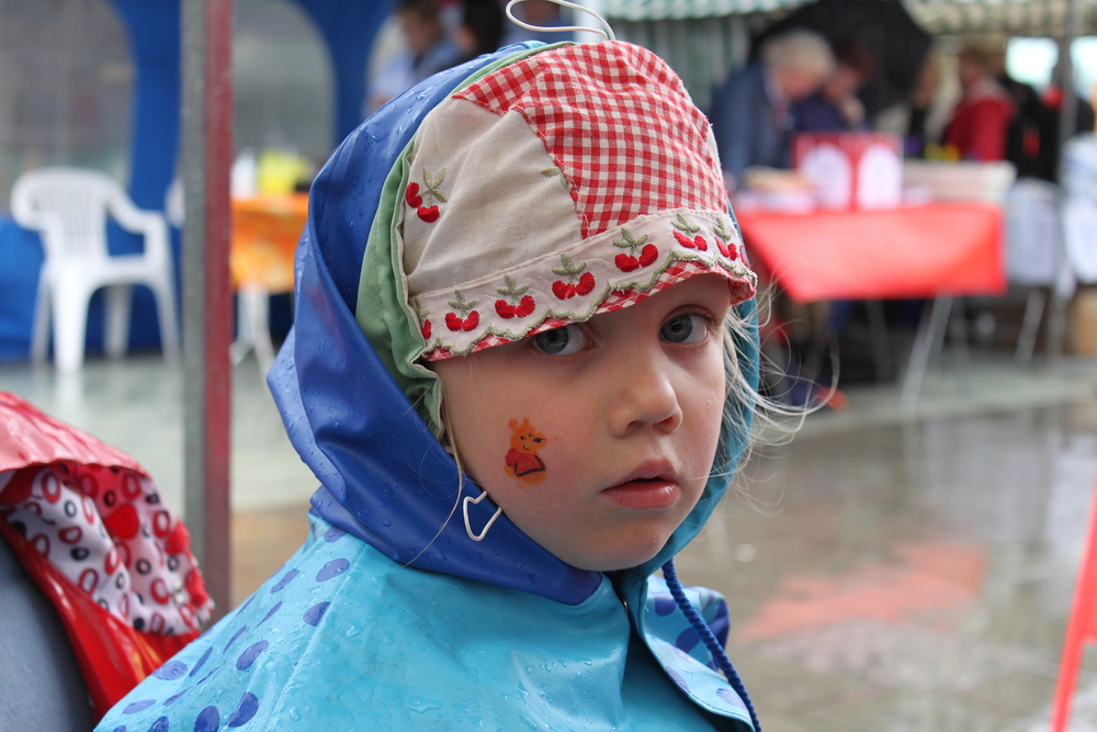 Vähitellen taivas peittyi harmaisiin pilviin ja juuri ennen kymmentä alkoi sataa. Ajoittain vettä tuli kaatamalla, toisinaan muutoin vain tasaiseen tahtiin. Sadetta riitti tapahtuman viimeiselle tunnille eli puoli kolmeen asti.