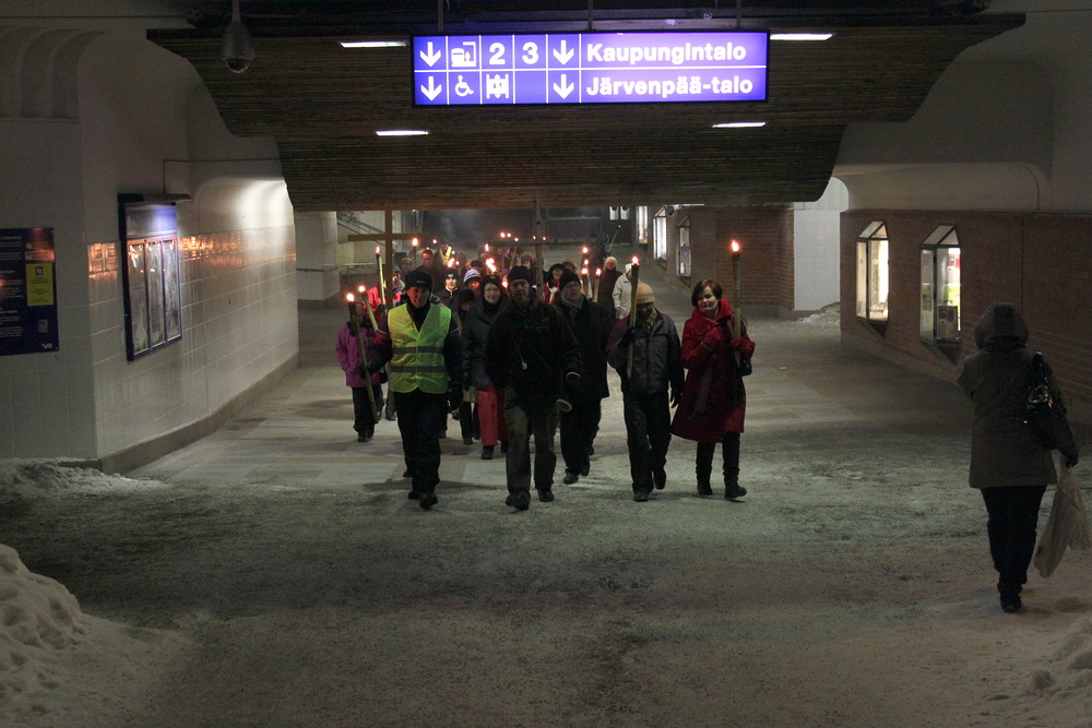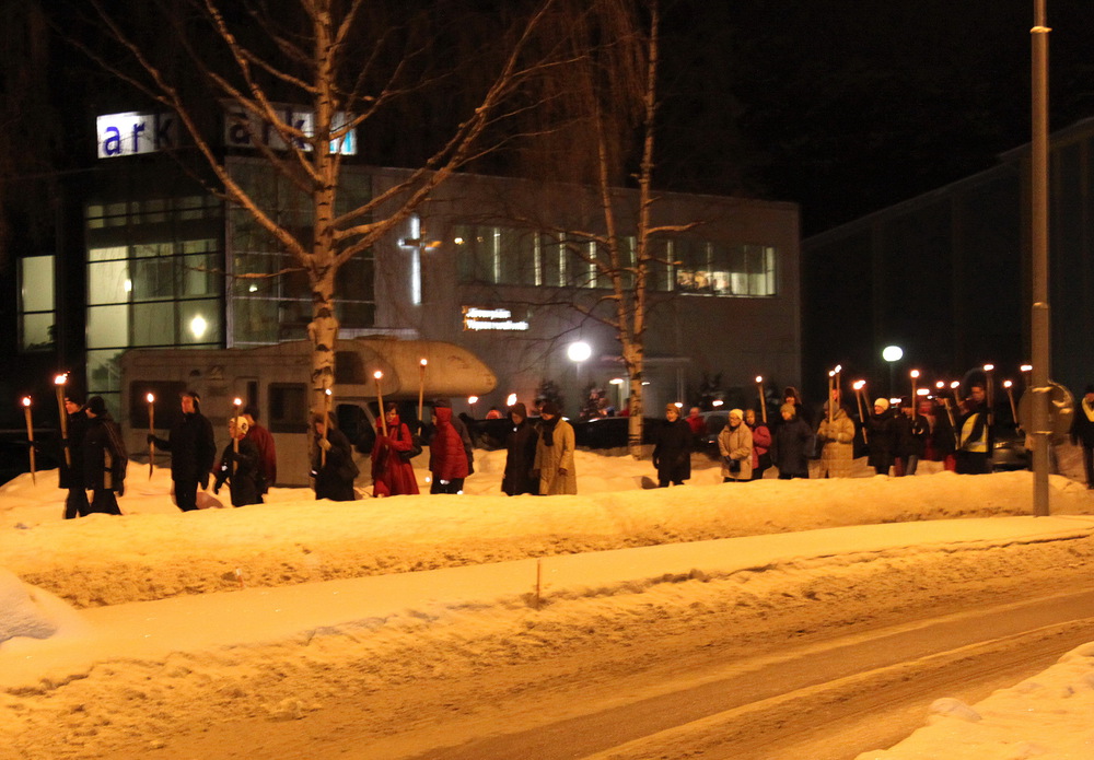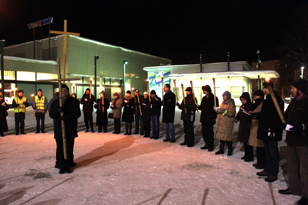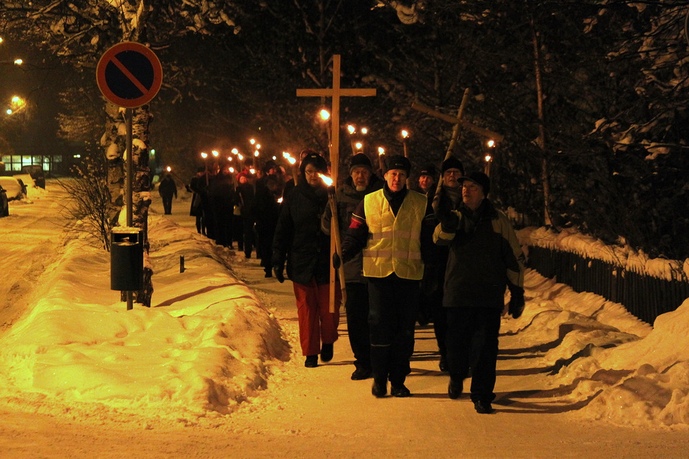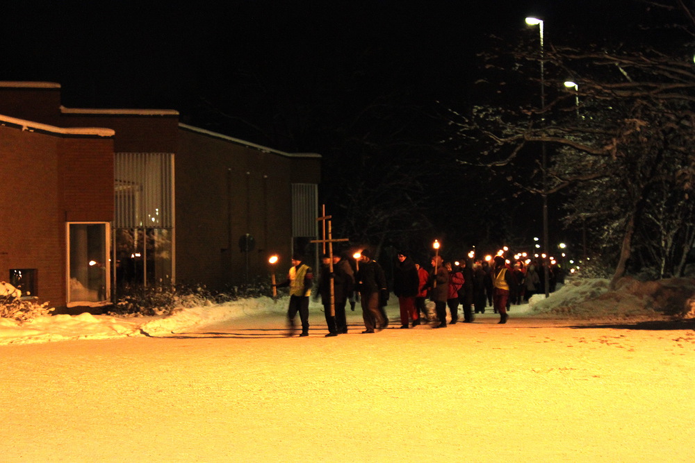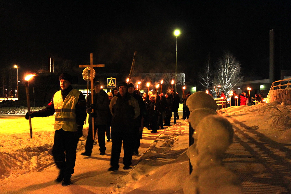 Rukoushetken jälkeen hankeen jätetyt soihdut otett...
