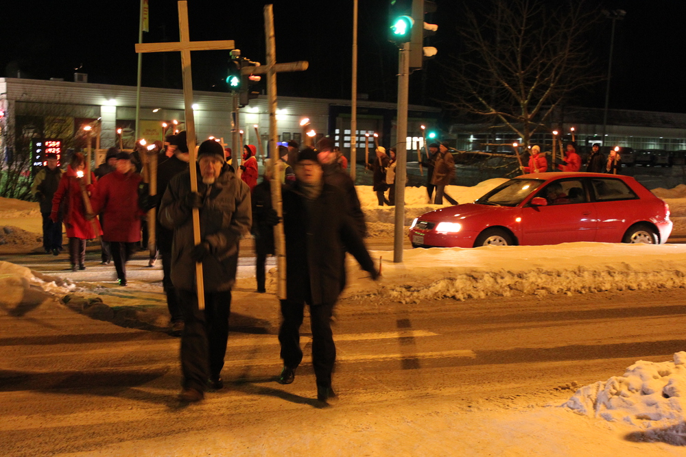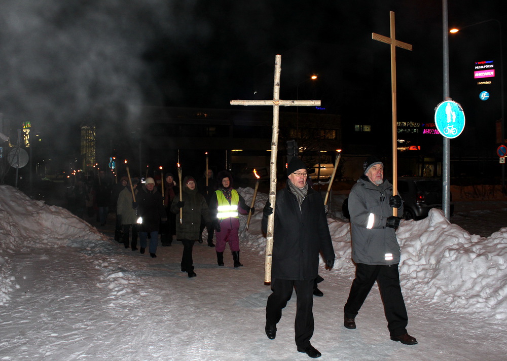 Kärjessä kannettiin kahta näyttävää ristiä.