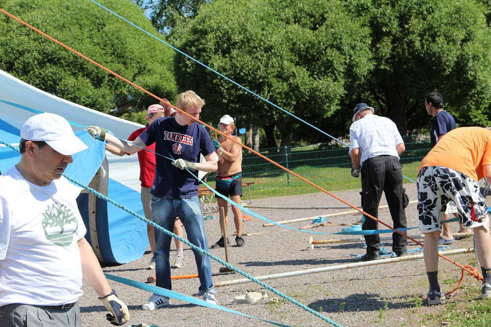 Teltanpystytystalkoot kuvasi Marjatta Saarinen.