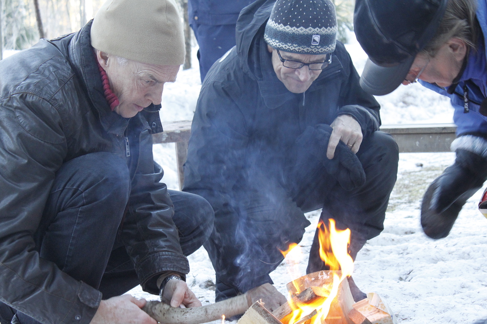 Kylmässä metsässä nuotion sytyttäminen on tarkka j...