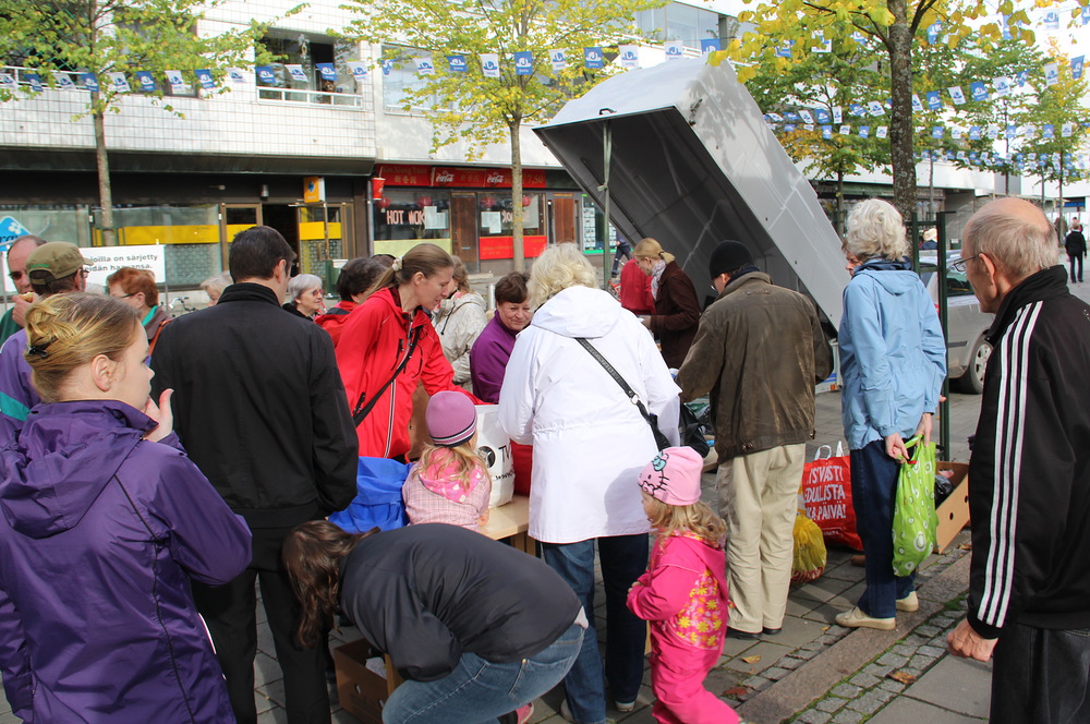 Monet omenoita jaettavaksi tarjonneet ovat kertoneen suorastaan hukkuvansa omeniin. Kaikilla ei kuitenkaan ole puutarhoja, eikä kerrostalojen parvekkeilla kasva omenapuita. Kaikilla ei liioin ole ystäviä, jotka kantaisivat omenoita ovelle. Tämän sai vapaaehtoisten joukko havaita, kun kuusisataa kiloa omenia löysi onnelliset noutajansa jo ensimmäisen tunnin aikana. Paikalle haettiin nopeasti 400 kiloa lisää. Nekin loppuivat jo paljon ennen jakamisen päättymiseksi sovittua klo 13 määräaikaa.