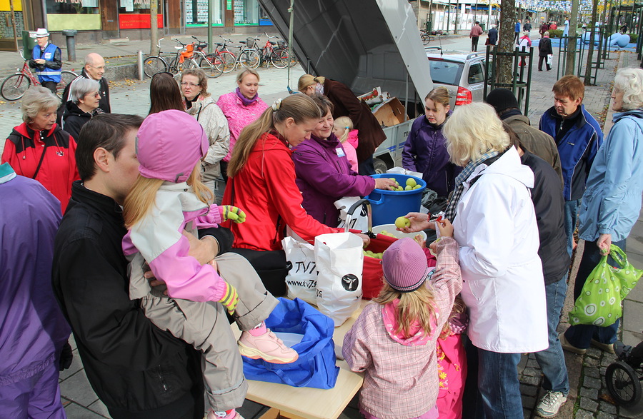 - Miksi te tätä teette? Mikä saa teidät hakemaan ylijäämäomenat eri puolilta ja jakamaan ne ilmaiseksi laitoksiin, koteihin ja nyt täällä kävelykadulla? ihmetteli moni omenapussin mukaansa saanut.