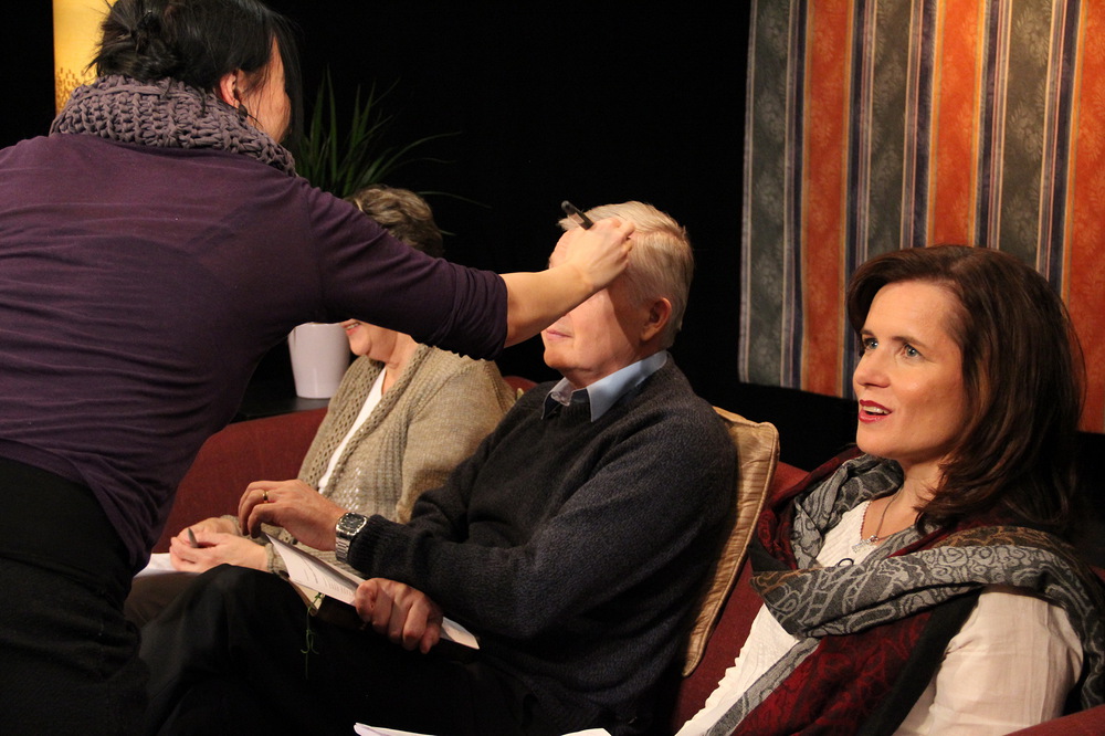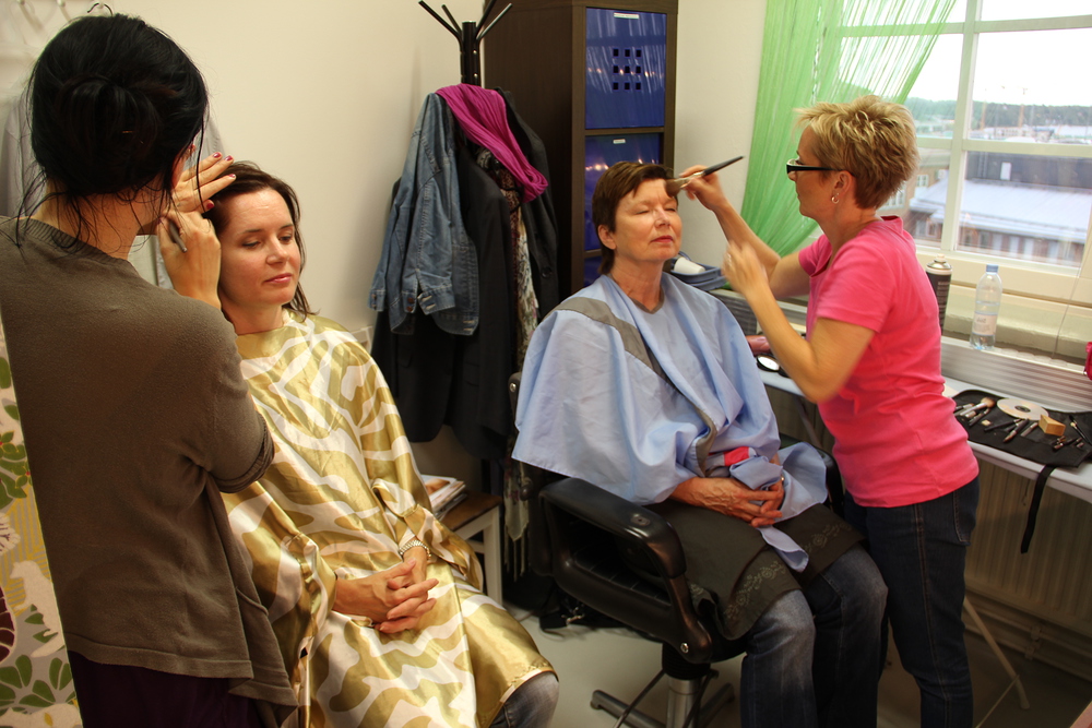 Kuvaustauolla Enne-Mari Rytkönen, Katri Grönroos j...