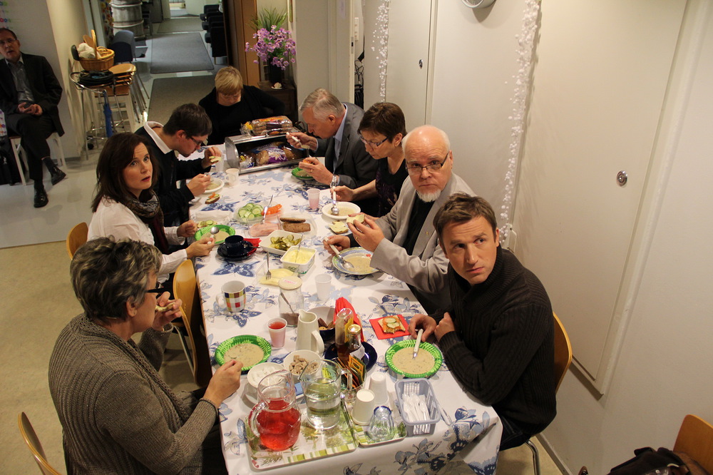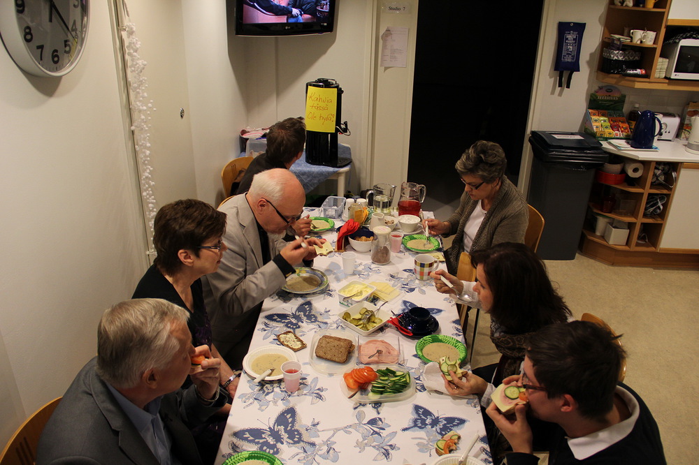 Studion lämpiössä oli hyvä ruokailun yhteydessä ka...