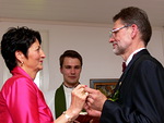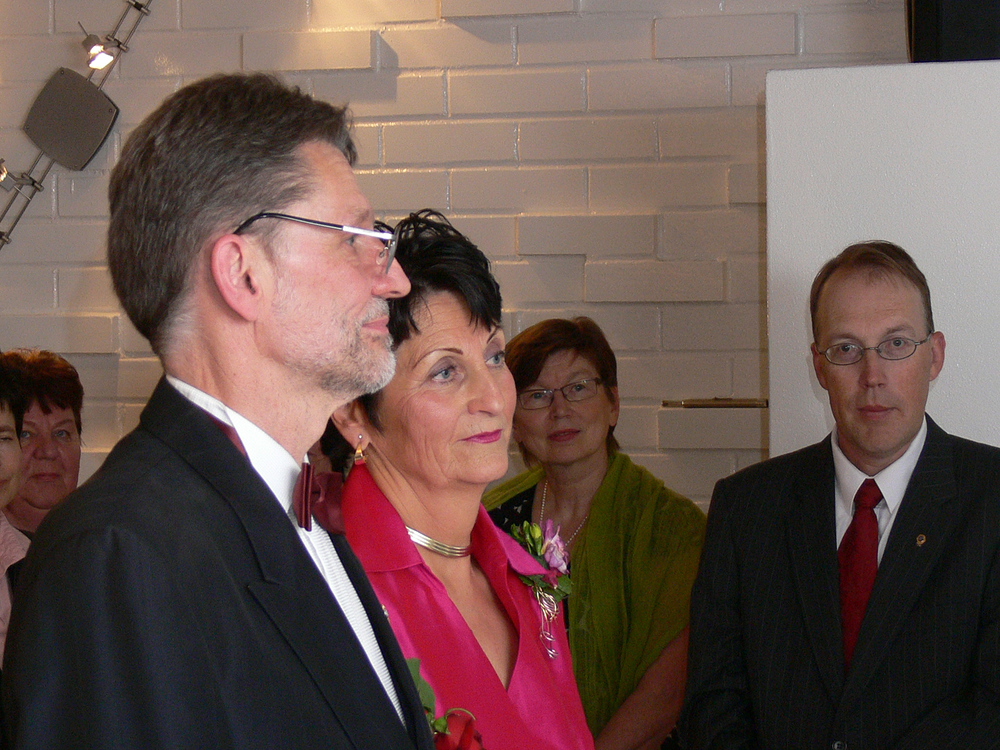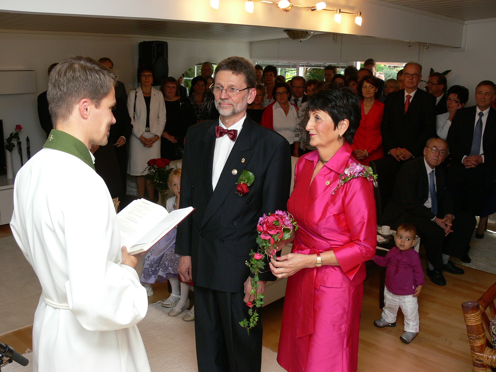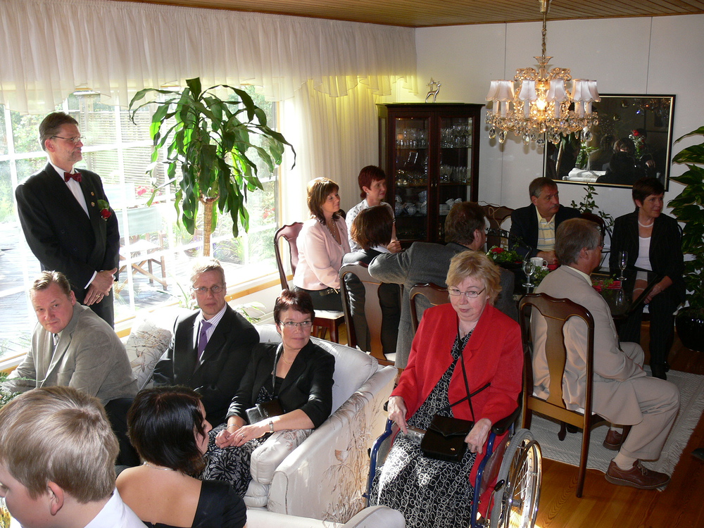 Vesan ja Tertun kauniiseen kotiin Tasettikujalle kokoontui sunnuntaina 31.8. runsaat sataviisikymmentä henkeä juhlimaan tärkeää päivää. Vesa ja Terttu ovat aktiivisia ja monenlaisissa hankkeissa mukana olevia järvenpääläisiä. Heidät tunnetaan niin liike-elämän, seurakunnan kuin järjestötoiminnankin alueilla uutterina ja oman panoksensa yhteisiin hankkeisiin auliisti tarjoavina vastuunkantajina. Niinpä heidän ystäväjoukkonsa on laaja.
