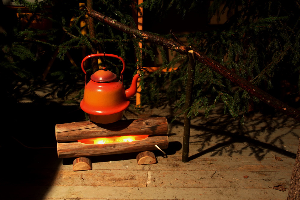 Nokikahvit valmistumassa aitan nurkassa