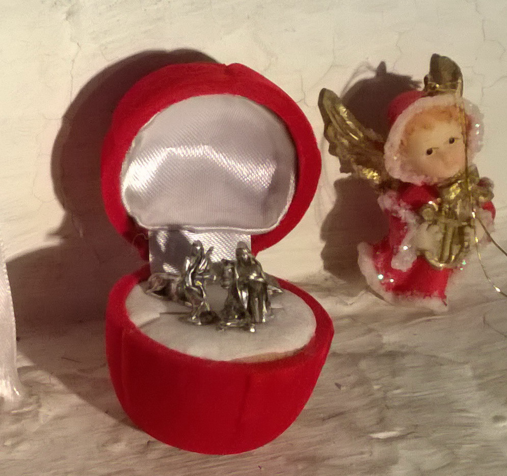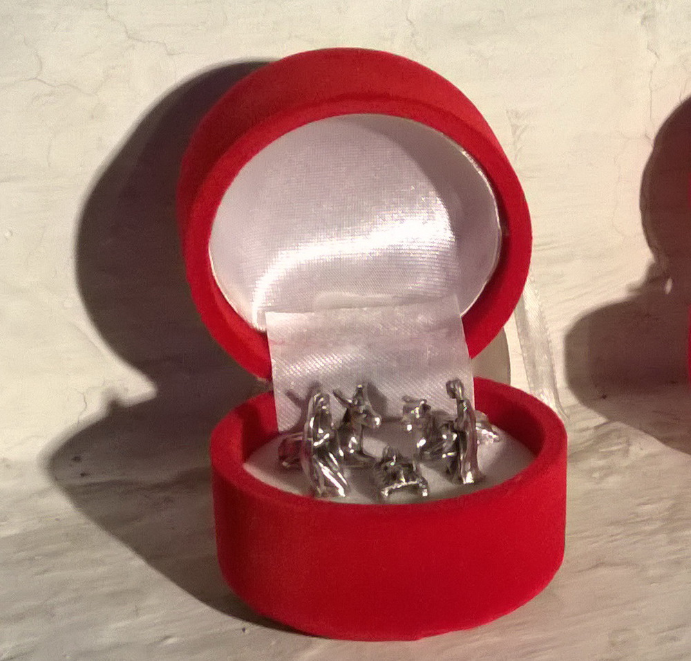 Nämä seimihahmot mahtuvat pieneen korurasiaan...