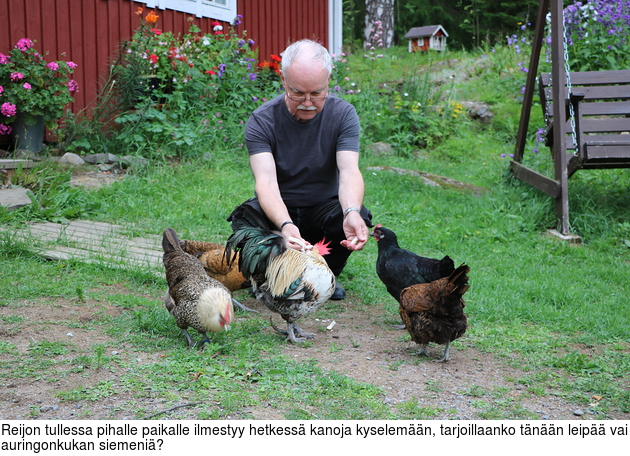päivää. Varsinkin Reijo saa kaikki kanat ryntäämään pensaitten alta leipää