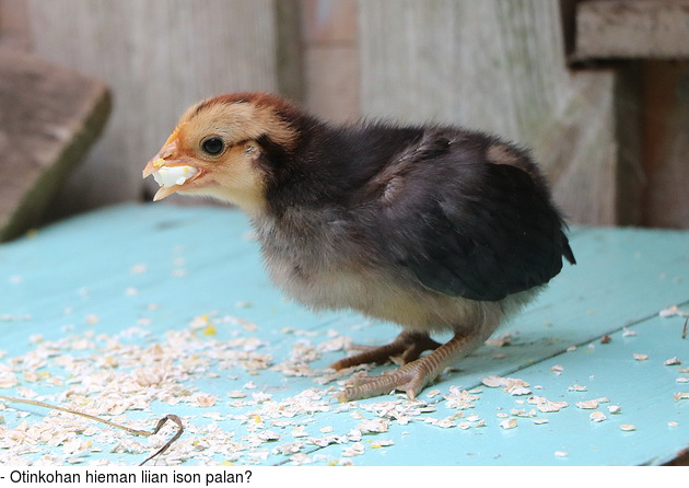 lattian kuivikepuruista, kun kanaemo etsi ruokaa poikasille. Kun kana on niin