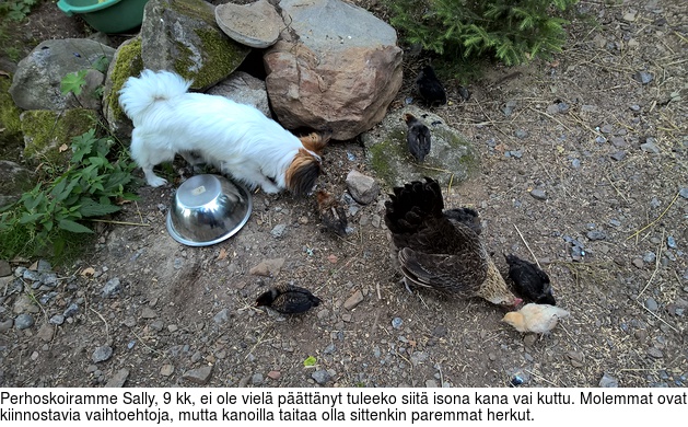 kanaperheen väliin. Pienelle kanaperheelle riitti hyvin pieni oma karsina,