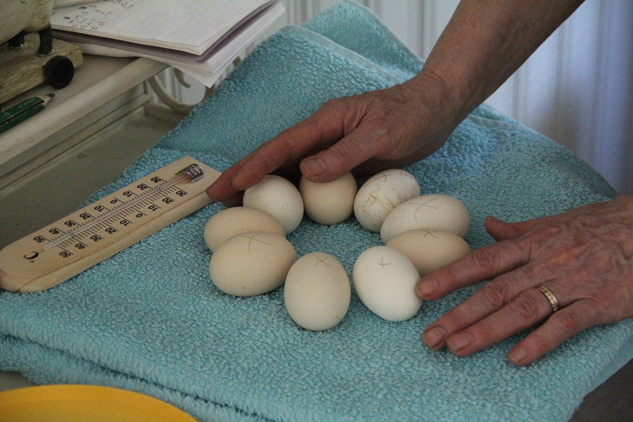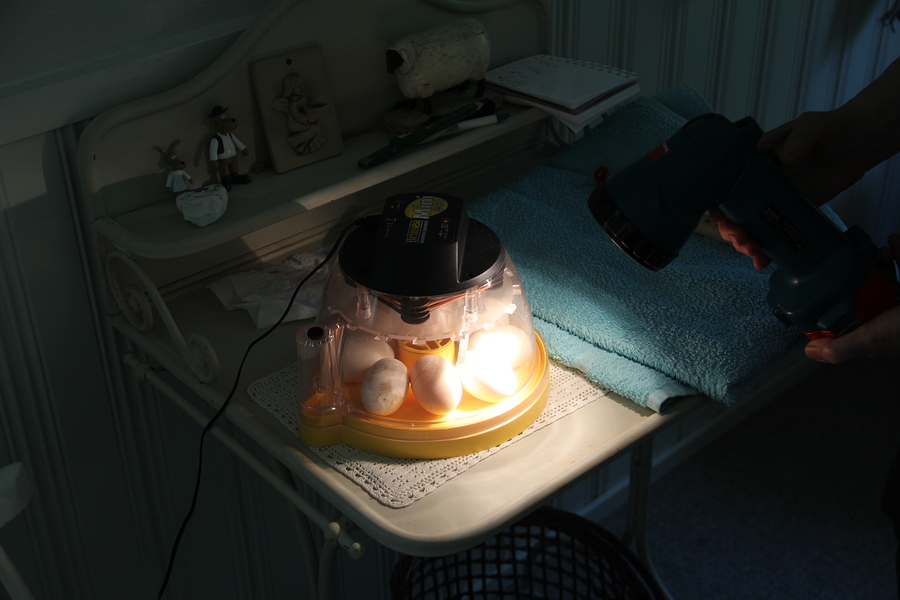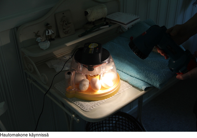 Toisella viikolla meillä oli ”neuvolakäynti”. Pimeässä huoneessa lampun läpivalaisussa tiirailimme näkyykö uudesta tipusta verisuonia. Yksi muna oli aivan kirkas, isättömäksi jäänyt tuhkamuna ja se poistettiin joukosta.