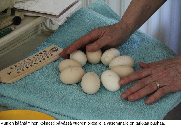 on pitkää ja kolmen viikon aikana tulee 60 munankääntöä. Siinä munia hoivatessa