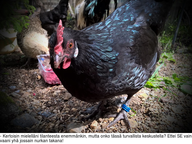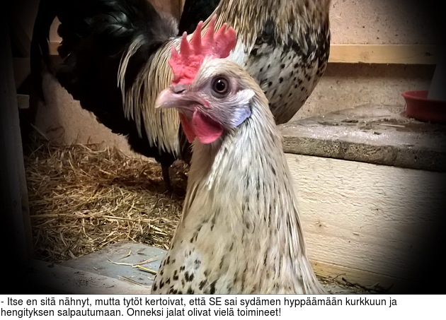 kotkottivat tohkeissaan. Vaikka kanat eivät osanneet sanoa ymmärrettävällä