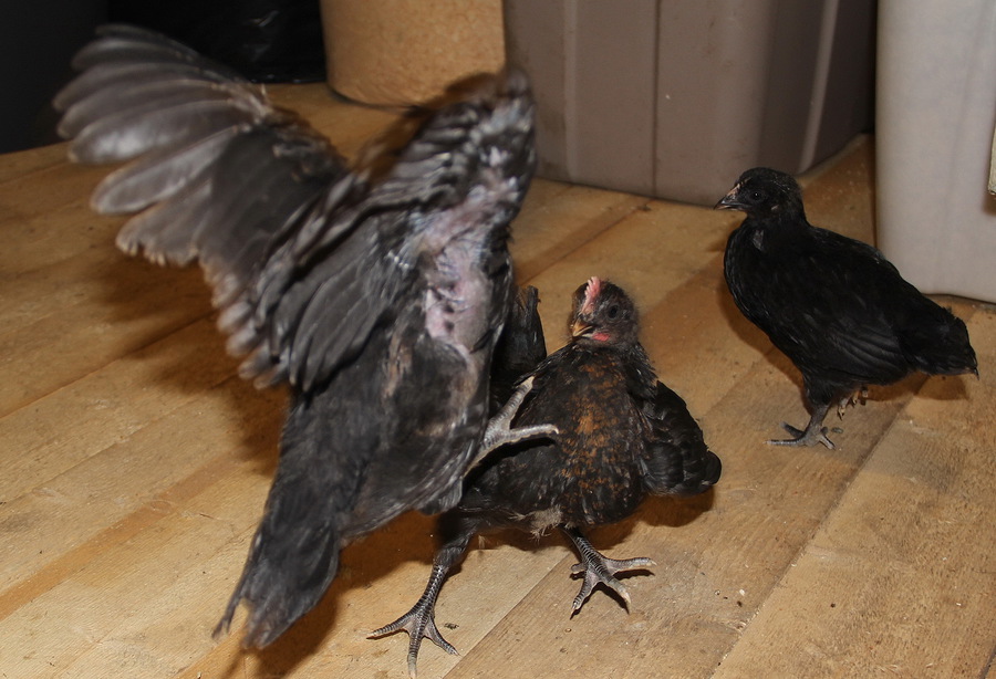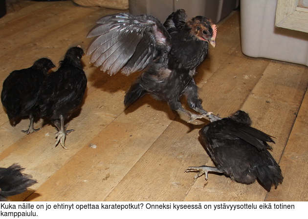 ja variksenpoikasia muistuttavista kanoistamme. Tällä hetkellä nuo kuukauden ikäiset