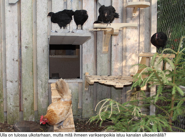 tänään menin illalla yhdeksän aikoihin sulkemaan ulkotarhoista luukkuja, Ulla