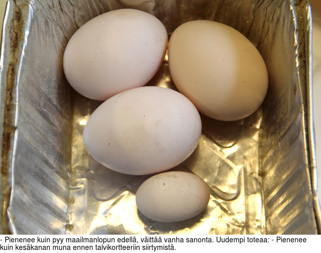jo nukutaan!" Ensi kesänä nekin ovat jos isoja munivia kanoja tai