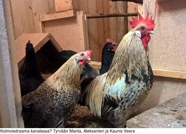 silmäilin kanaparvea. Veeraa, mustaa kaunotarta ei näkynyt missään. No, se on