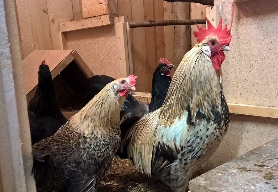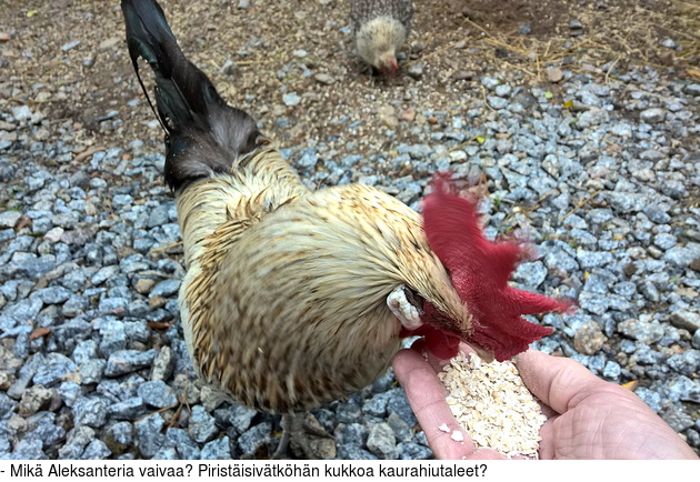 joukossa tulee yleensä myös kukko Aleksanteri. Eilen se vain istui orrella.