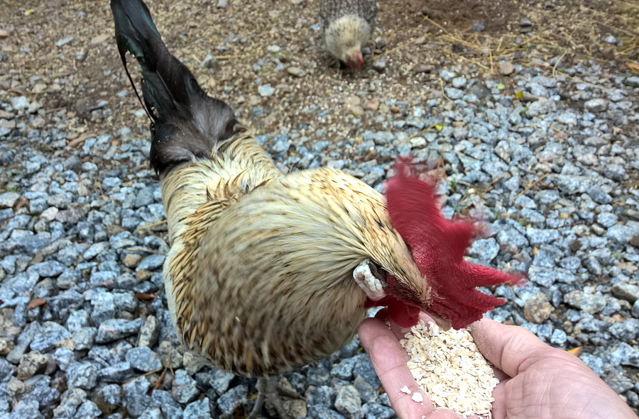 Aamuisin kanat aina syövät tarhassa kananrehua, ja jos on