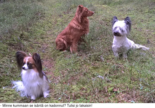 Kaija: Reijo halusi hiukan vaihtelua ja avarampia maisemia ja lähti muutamaksi päiväksi merelle melomaan kanootilla. Meidän kolmesta koirastamme skyenterrieri Zorro kaipaa häntä kovasti ja makaa pihalla kuono tielle päin. Yhtenä päivänä se oli vienyt sinne ison puruluunkin, että voi sen sitten heti ojentaa tervetulolahjana.