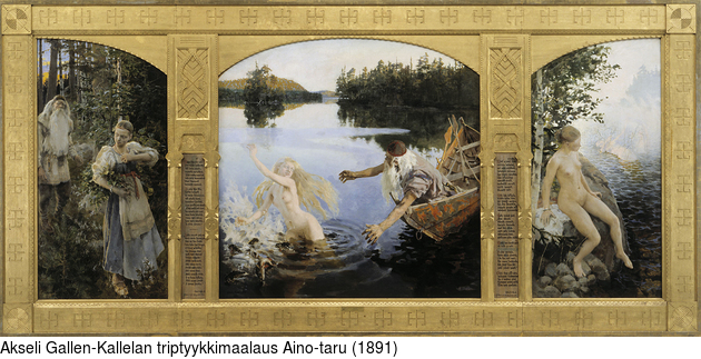 Aino lähtee kulkemaan pois kotoaan ja kolmen päivän perästä hän tulee meren rantaan. Itkettyään yön rannalla hän näkee aamulla näyssä "kolme neittä niemen päässä, meressä kylpemässä". Aino lähtee pyrkimään joukkoon neljäneksi, mutta kirjava kivi, jolle hän istuu, vajoaa mereen vieden Ainon mukanaan. Tarinan loppu: