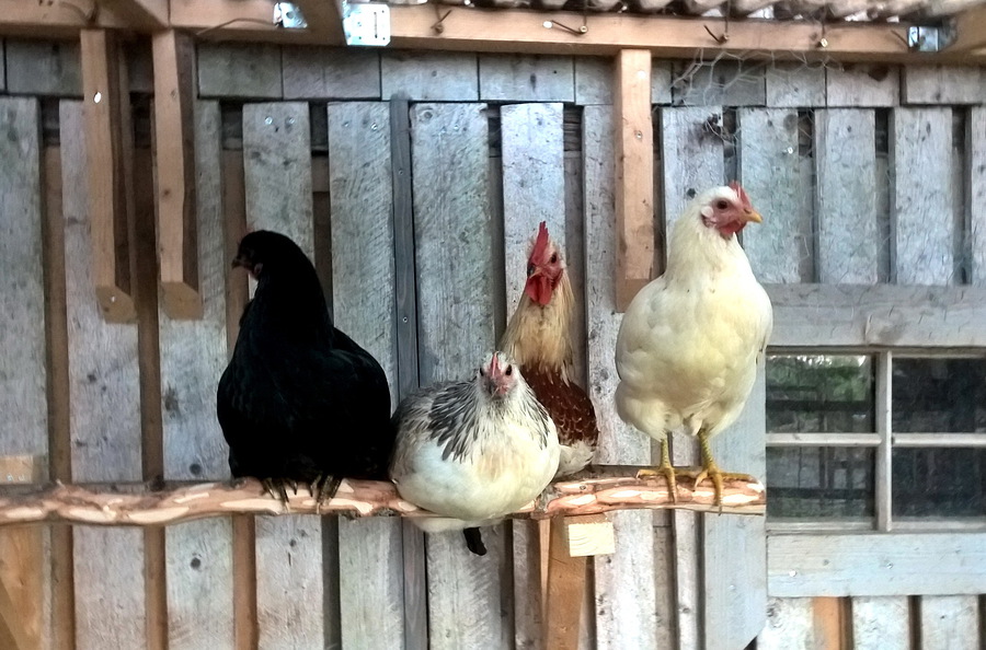 Kultakaulakanan ensimmäiset poikaset kuoriutuivat huhtikuun alussa ja elokuussa ne olivat jo melkein aikuisen kokoisia. Ne olivat ulkotarhassa orrella myös yöt. Yksi valkoinen kukko ja musta, harmaa ja valkoinen kana. Pikku parvi oli oikein kaunis ja ajattelinkin, että siitä voisi myydä kivan porukan jollekin kanoista haaveilevalle.
