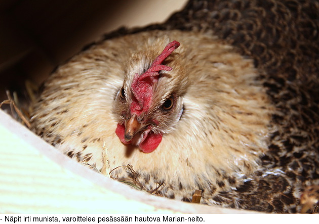 kuljeskeleva ja määrätietoinen kana. Se on nyt ollut kolme päivää pesässä,