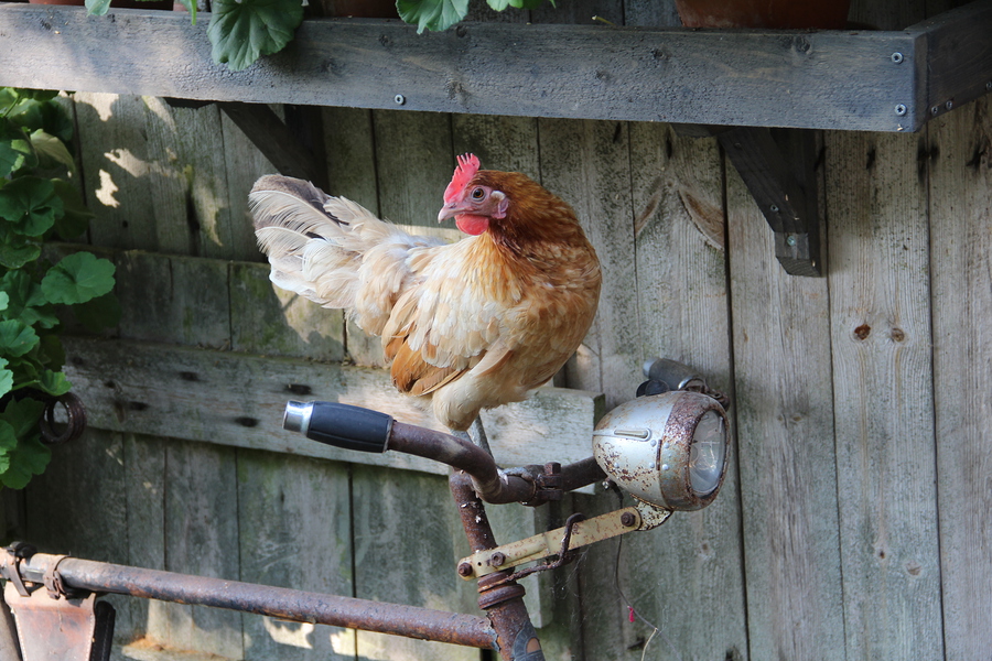 Ulla kana asuu edelleen yöt sisällä omalla orrellaan ja käy päivisin munimassa pahvilaatikkoon. Se kulkee hienosti ovesta sisään ja ulos.