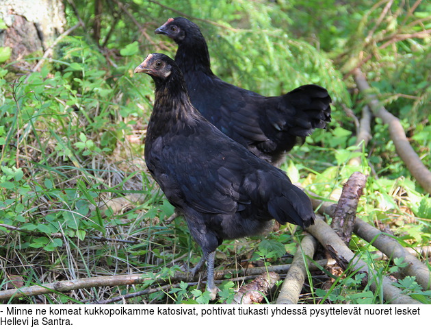 mustaa kananuorikkoa pitävät nyt tiiviisti yhtä. Ne ovat äitinsä Kauniin Veeran