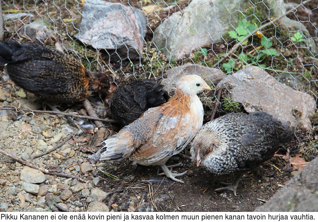 Pikku Kanasen lauma. Onneksi niistä neljästä ei kukaan ole kukkonen.